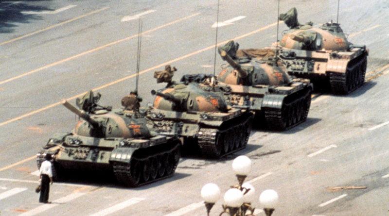 O rebelde na foto parou em frente aos tanques que tentaram desviar por mais de uma vez do mesmo, mostrando um protesto não agressivo do rebelde. Após isso ele subiu no tanque, conversou com o motorista, e sumiu no meio da multidão levado por duas pessoas de azul, dando passagem para o tanque.